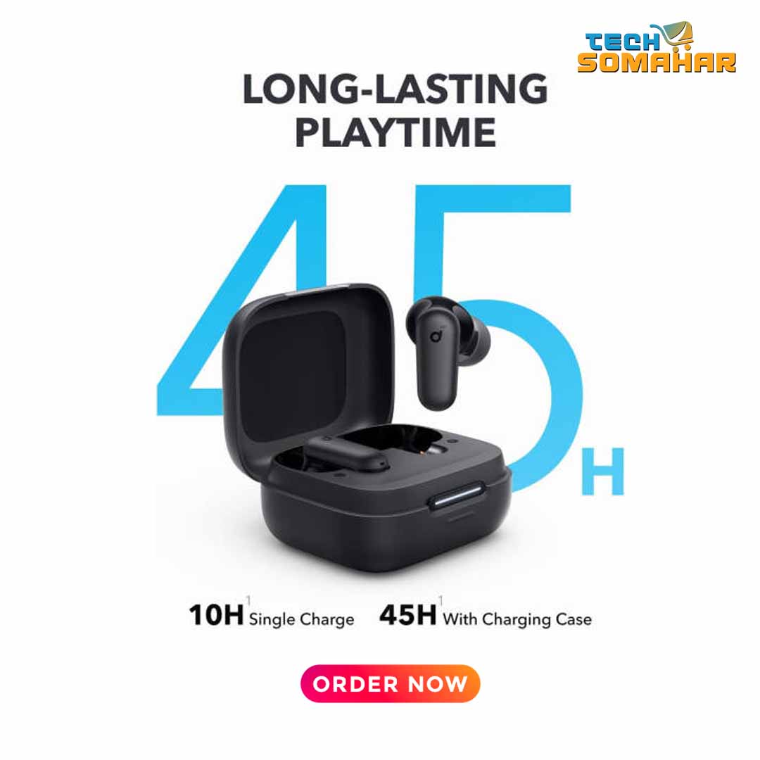 - 🔋 একবার চার্জে 10 ঘণ্টা + কেসসহ মোট 45 ঘণ্টা ব্যাটারি ব্যাকআপ